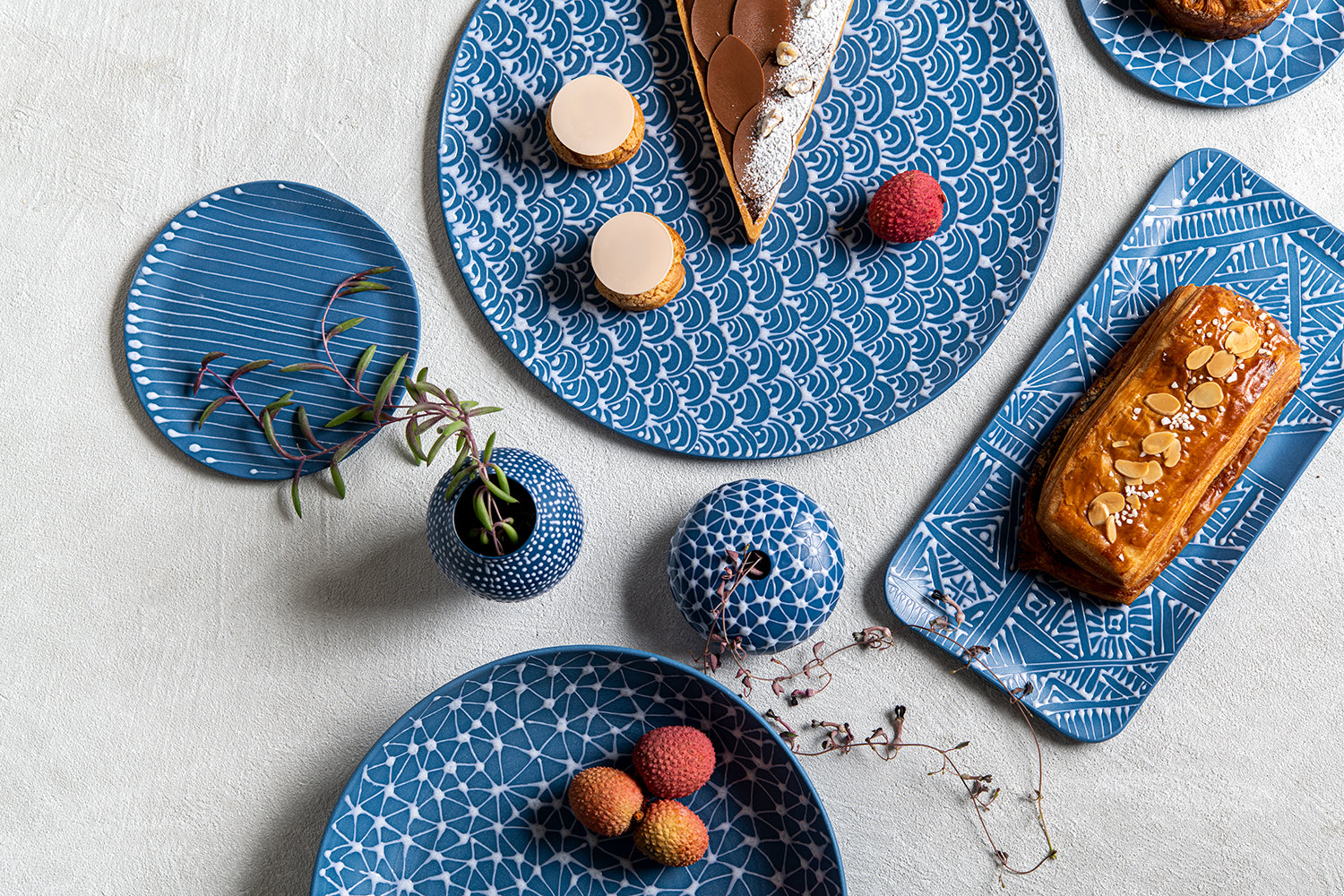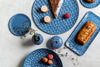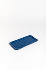 Rectangular serving plate | Morocco Blue with Black Ladder Stripes