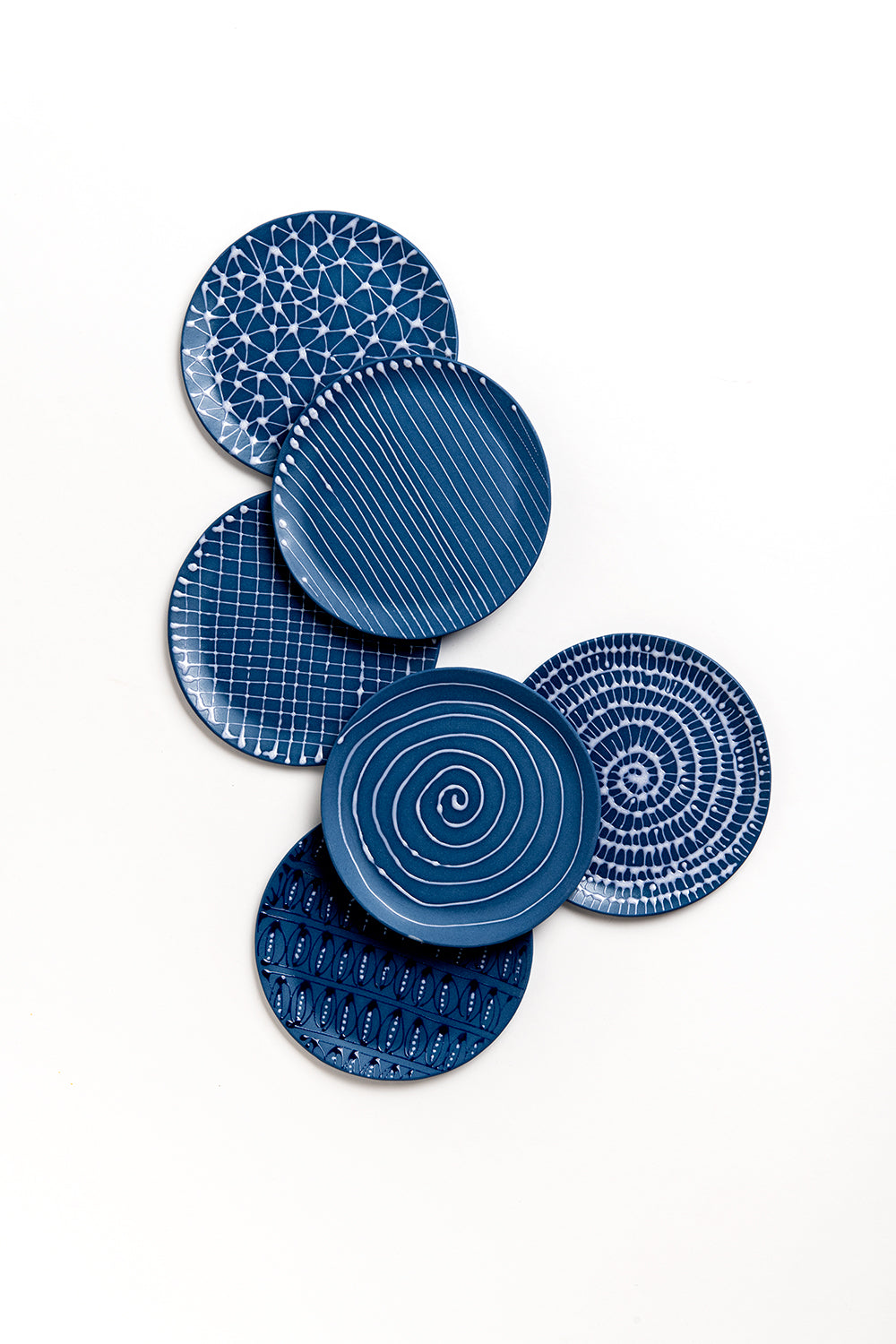 Set of 6 Dessert Plates | Morocco Blue with White Patterns