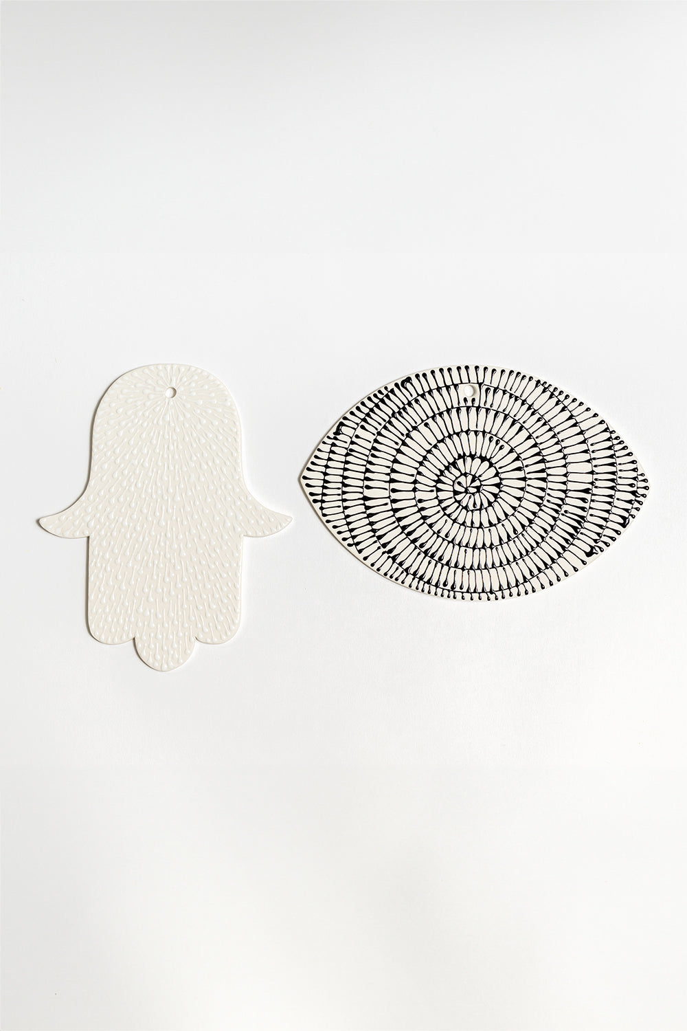 Set of Lucky Eye and Medium Hamsa | White with Black & White Pattern