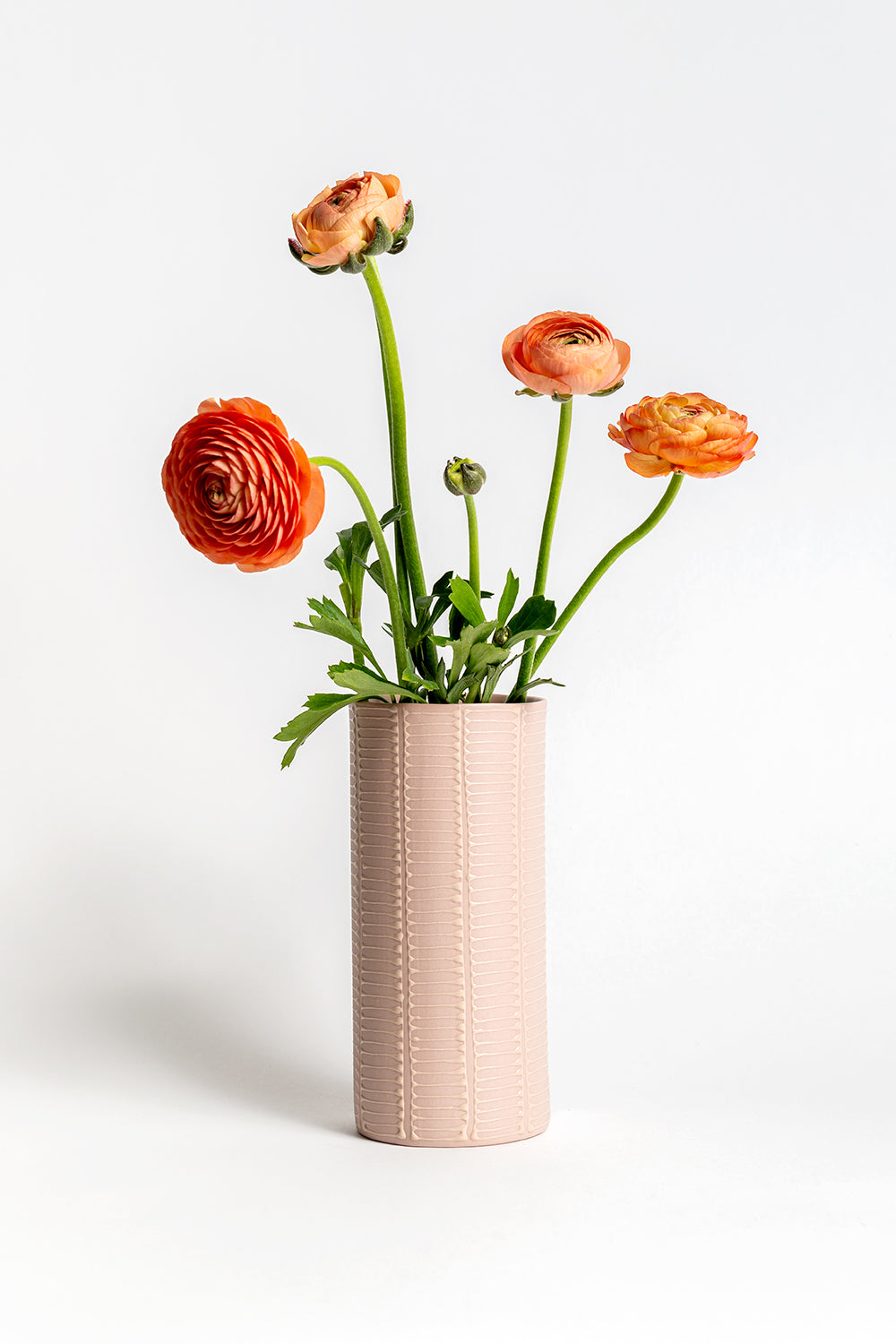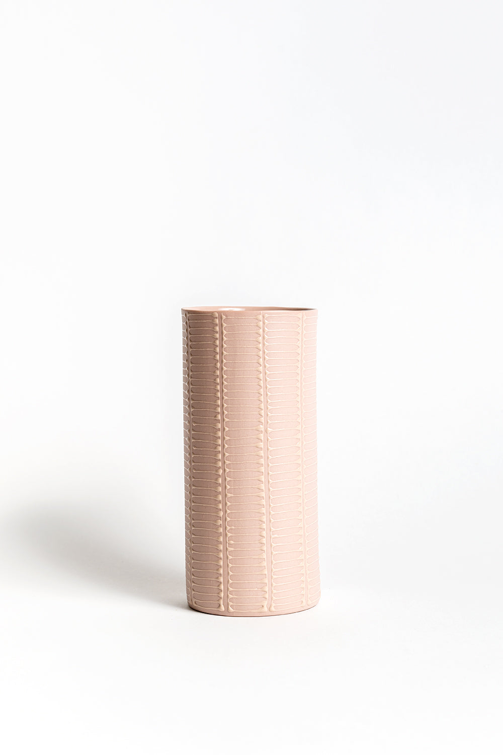 Cylinder Vase | Blush with Cream Ladder Stripes