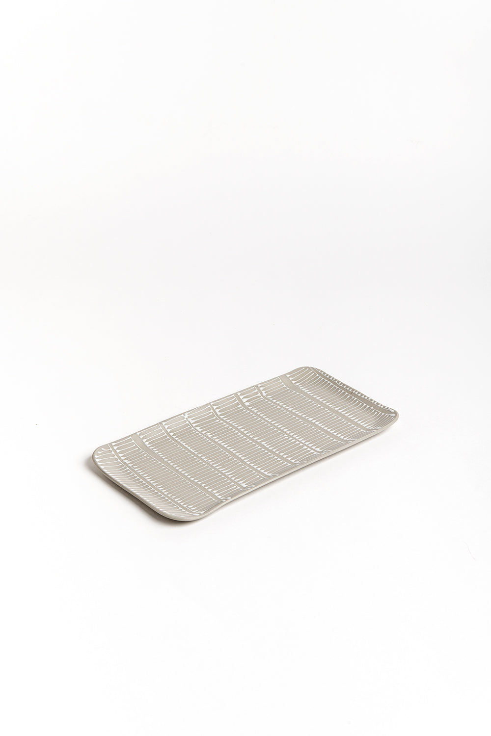 Rectangular serving plate | Light Grey with Ladder Stripes