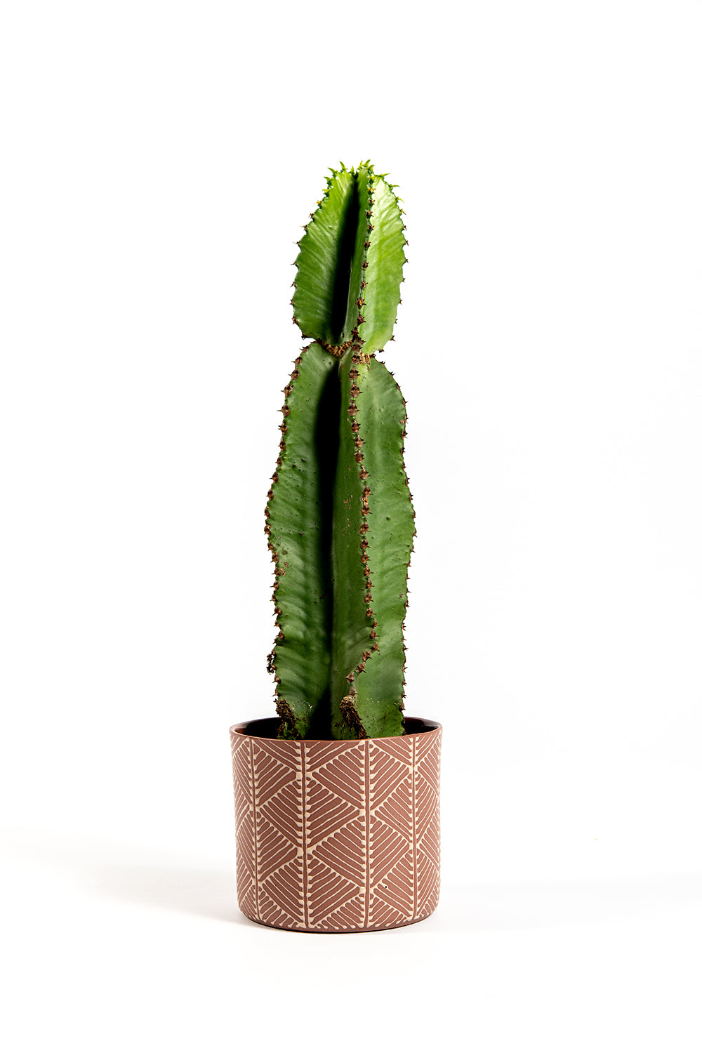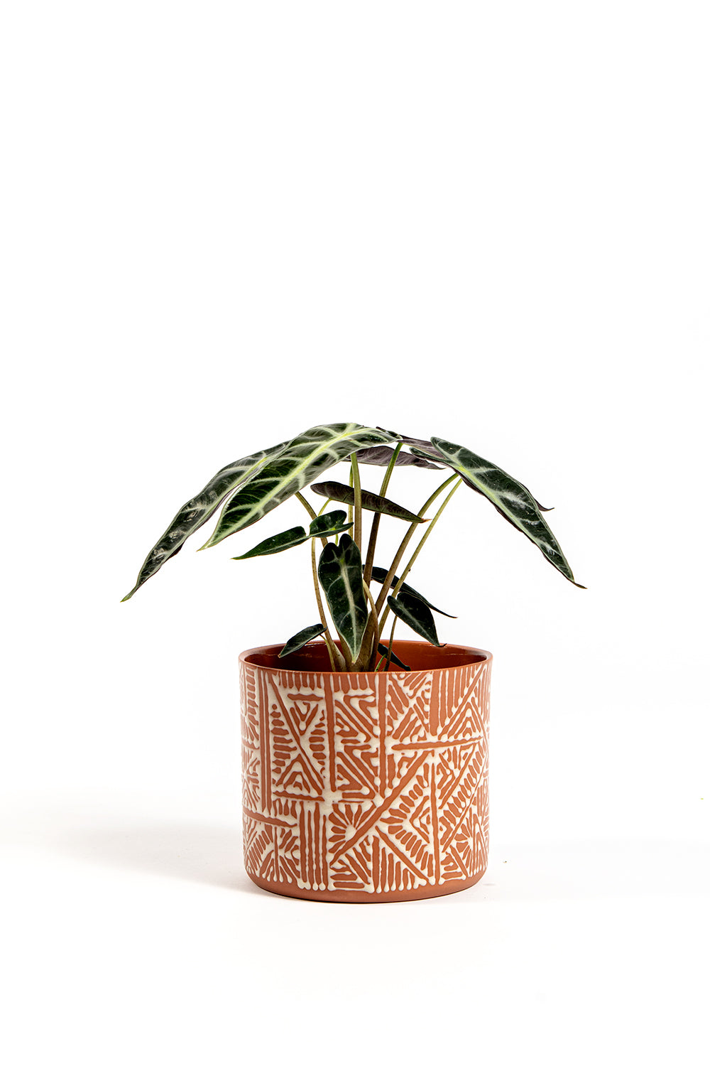 Cylinder Planter | Indian Red with Cream Ladder Stripes