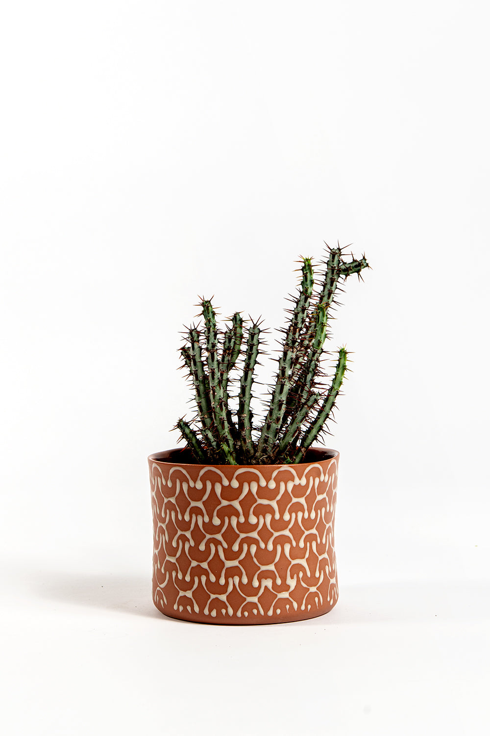 Cylinder Planter | Brick with Beige Oriental Patterns