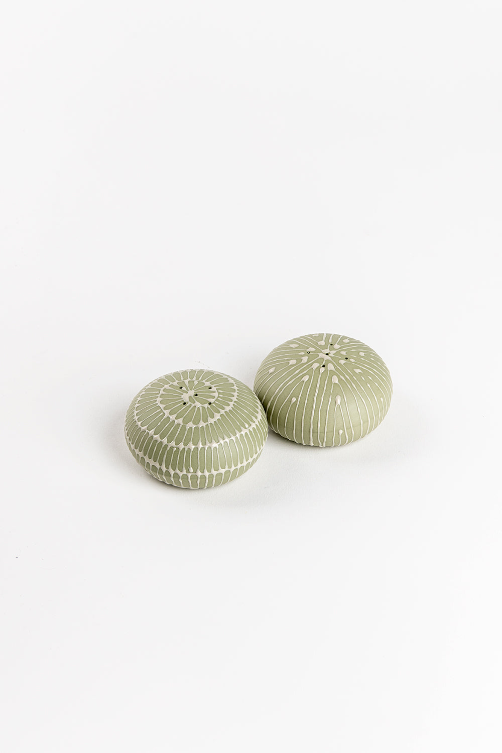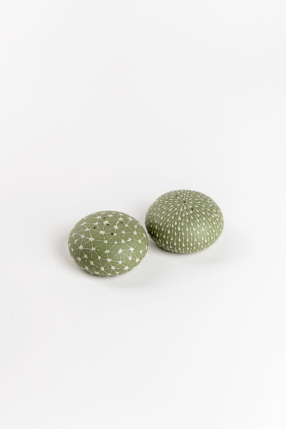 Salt and Pepper Shakers | Olive Green with Beige Stars and Rain