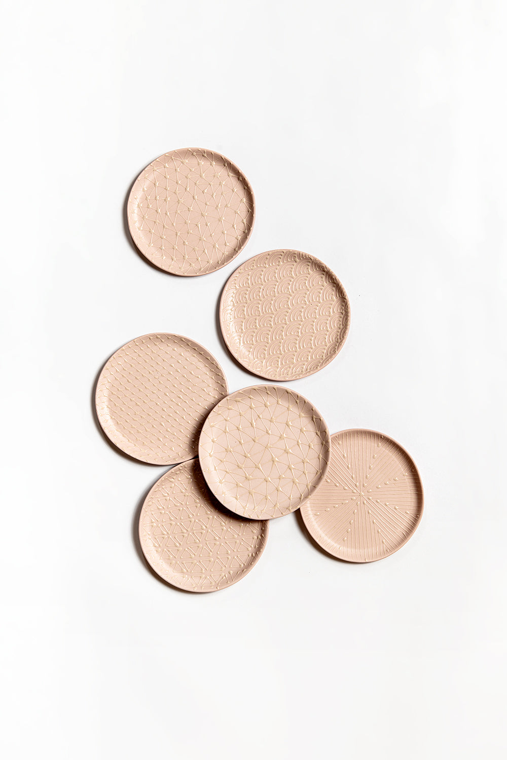 Set of 6 Dessert Plates & 1 Serving Plate | Blush with Cream Patterns